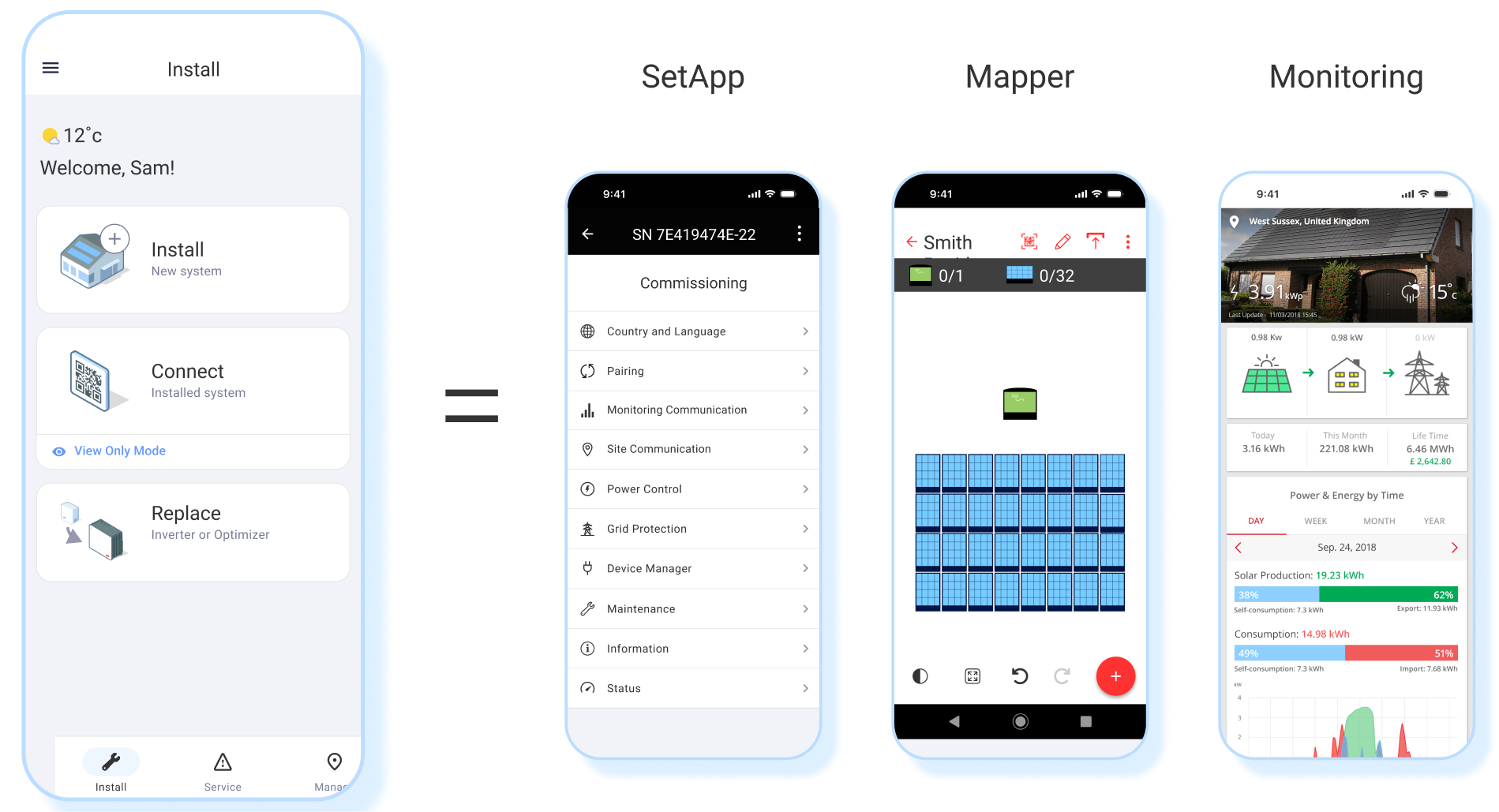The Shift: We led the design strategy to consolidate three fragmented tools: SetApp (Installation), the Monitoring Platform (Service) and Mapper into a single "Super App," SolarEdge Go.