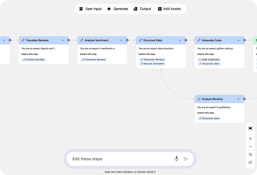 The AI Solution: I implemented an AI Agent (using Opal) to automate review analysis.